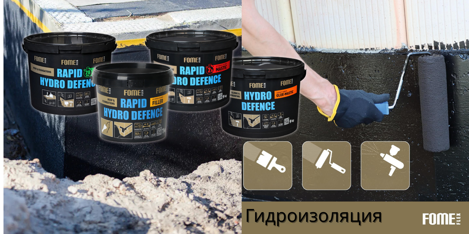 Эффективную гидроизоляцию фундамента и других конструкций можно выполнить с помощью серии Fome Flex Rapid Hydro Defence: