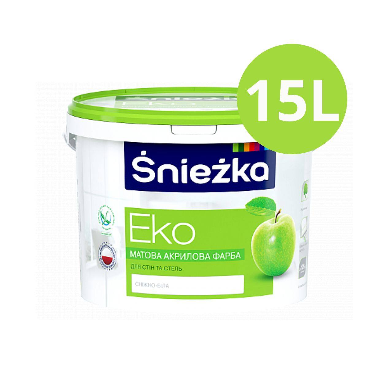 Sniezka Eko — матовая акриловая краска для декоративной покраски стен и потолков внутри помещений. Подходит для цементных, цементно-известковых, известковых, гипсовых оснований, гипсокартона, а также деревянных и древесных поверхностей.