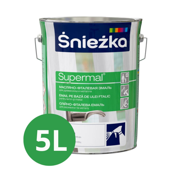 Sniezka Supermal — масляно-фталевая эмаль для декоративной и защитной окраски древесины, древесных материалов, штукатурки и металлических поверхностей. Применяется внутри и снаружи помещений.