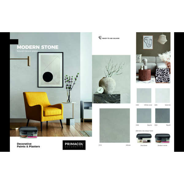 Primacol Modern Stone este o pastă decorativă gata de utilizare pentru interior, cu finisaj mat, neted și profunzime optică, inspirat de „secțiunea” unei pietre. Potrivită pentru pereți accent în interioare clasice, moderne sau eclectice, inclusiv spații comerciale. Livrare rapidă în Chișinău și suburbii (Codru, Cricova, Durlești, Stăuceni etc.).